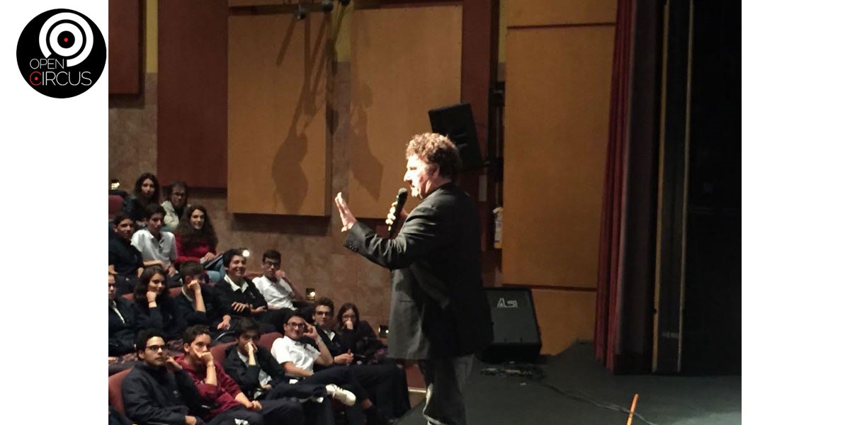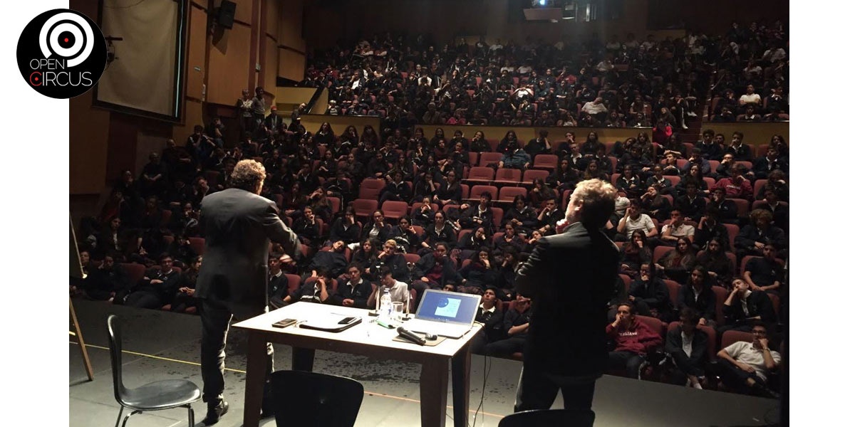 Nell'ambito del progetto per la diffusione della cultura circense Open Circus, David Larible e Alessandro Serena hanno tenuto un incontro con gli studenti del Colegio Leonardo Da Vinci 22 Maggio Bogotà.